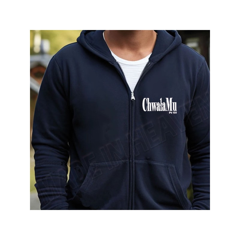 Bluza dresowa z kapturem zapinana na metalowy zamek.